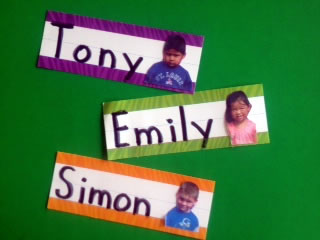 Write each child’s name and glue their picture on the card. Use these for writing prompts in a center.