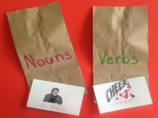on 5 index cards. Place them in lunch bags labeled “nouns” and “verbs.” Children choose a noun card and a verb card and write a sentence using the words.