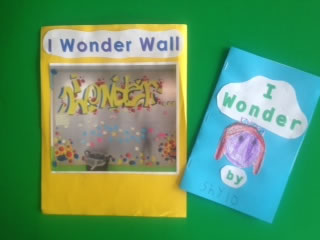 •Make “I Wonder” books for children by stapling several sheets of copy paper in a sheet of construction paper. Children write “I Wonder” on the front of their book. Encourage them to write or draw things that they would like to know more about in their books.