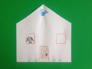 Give children the shape of a house. Make a tape with directions for them to listen to and then draw on the house. For example:
