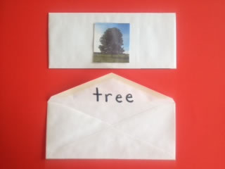 of objects with three or four letters. Glue them to the front of an envelope. On the inside flap of the back of the envelope write the word. Children choose an envelope and spell it as they sound it out. They can self-check by looking at the back of the envelope.