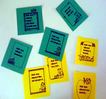 •When children return the book bag to school, invite them to sit in the “reader’s chair” or “teacher’s chair” and talk about the book.