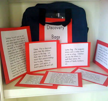 Game Bag - Put a classroom game that the children enjoy in the bag. Let them take it home and teach their parents/siblings how to play. Memory games, card games, or board games all work well.