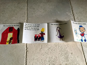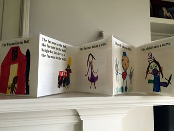 character from the song. Label their pictures. Lay the pictures in sequential order on a table and tape together. Fold back and forth to make an accordion book.