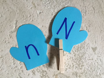 Place the mittens and spring clothespins in a basket. Children choose the ones that match and clip them together.
