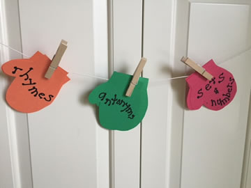 •Tie a string between two chairs and let the children hang up the matching mittens.