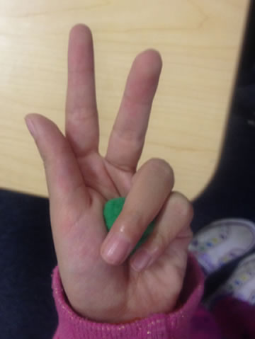 hand when they write. Demonstrate how to put pinky and ring man to “sleep” on the pompom before picking up the pencil.