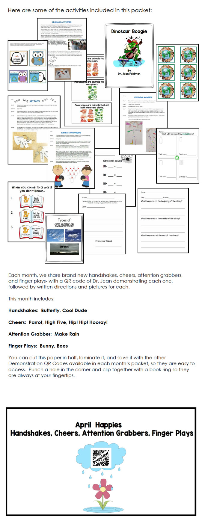 and finger plays- with a QR code of Dr. Jean demonstrating each one,