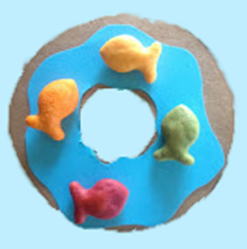 Add a few drops of blue food coloring to the cream cheese. Let the children spread the cream cheese on one half of a bagel.