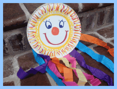 Staple two paper plates together ¾ of the way around with the insides of the plates facing each other. Decorate the outside of the plates with markers, paints, and paper scraps to look like a clown, sun, bear, etc. Blue on tissue paper streamers. Fill the inside with goodies and then staple the rest of the way around. Punch a hole in the top and tie with string to a long stick. Blindfold children and let them swing at the moving piñata with a rolled up newspaper. *You can also make a piñata from grocery sacks. Double the sacks and fill with goodies. Fold the top half of the bag over the bottom of a hanger and staple. Decorate with tissue paper, paints, etc.