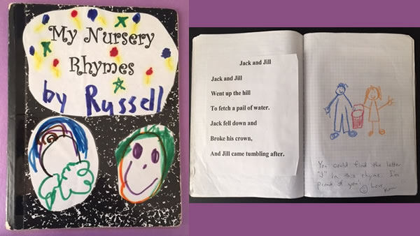 project. Each week run off a copy of a rhyme you want to focus on. (Be sure and increase the font for little eyes.) Children cut out the rhyme and glue it on the left and then illustrate the rhyme on the right. Use the rhyme for choral reading and to reinforce specific skills (letters, left to right, sight words, punctuation, etc.) throughout the week. On Friday children take home their books and read the rhyme to their parents. Encourage parents to write their "comments and compliments" in the book.